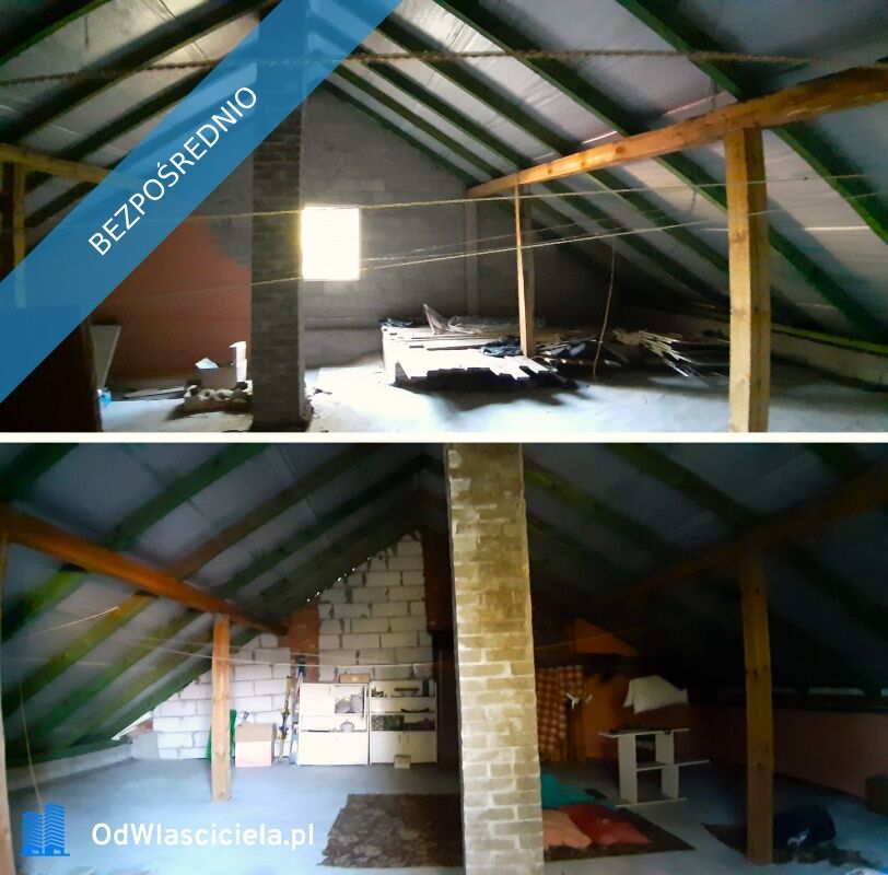 Dom jest parterowy z poddaszem obecnie nie użytkowanym ale nadającym się do przystosowania na cele mieszkalne.